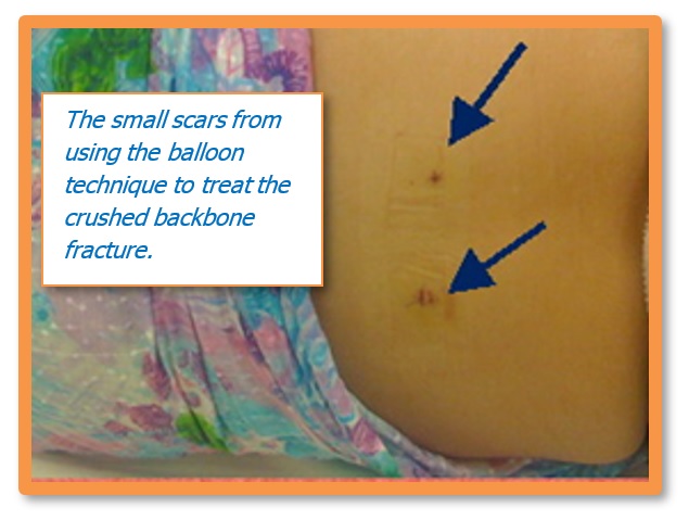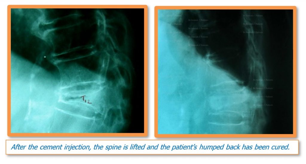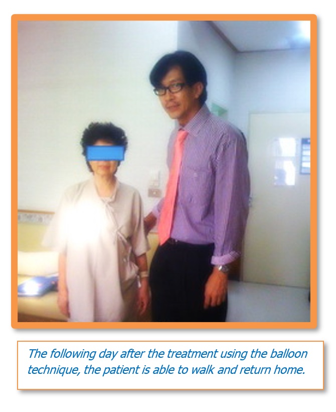 Open surgery returns bones to the right place by putting them together using wires, pins, plates, or screws. This method helps raise the crushed bone back to its normal height and can also help lift the humped back. This has been the most common way to address the problem over the last few decades. The advantage of this method is that the crushed bone is ‘lifted up’ so that it does not compress the nerve. Therefore the nerve is not destroyed and can return to its previous state. The drawback is that the patient will lose a small amount of blood, and will encounter pain around the wound, at the skin and around their muscles. Unfortunately, the result on the patient with thin bones is not as effective. Also, this method cannot be performed on a patient with a separate ongoing disease as it is considered too invasive and there is a poor outcome in the osteoporotic bone