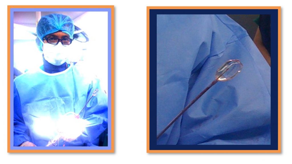 The operation uses a modern technology instrument called Flu X-ray (the real time x-ray), a fiber optic headlight (high powered lamp) and a very small surgical knife. The instrument helps reduce the incision size as well as the duration of the surgical procedure.