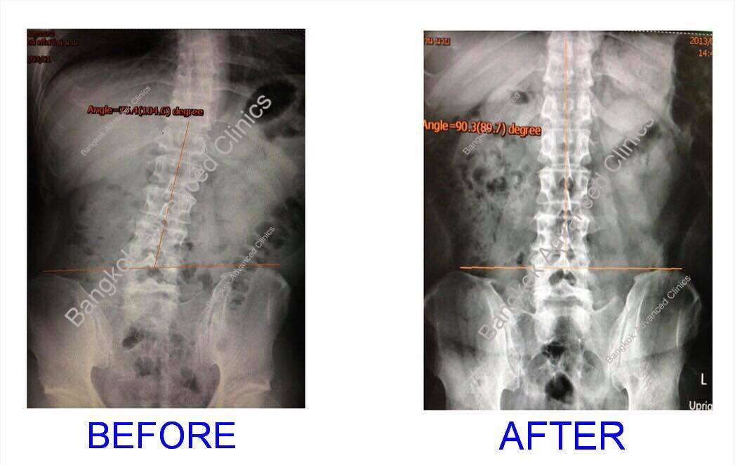 Scoliosis is the bending of the spine or the spine is distorted to the side which can occur with all ages. Most often it happens to children Especially in children aged 10-15 years. In general, if the symptoms are mild, usually do not need treatment. If the spine is very crooked May cause back pain, waist, chronic neck pain Should consult a doctor or specialist for treatment or correcting the crooked spine properly.