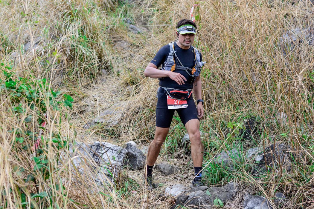การแก้ปัญหาเฉพาะหน้าจึงเกิดขึ้น ผมต้องยอมเปลี่ยน HR ใหม่ ตั้งคุมไว้ที่โซน 3 แทน และใช้ฟิลลิ่งตัวเอง เช็คความรู้สึกแต่ละก้าวที่วิ่งว่าเราได้ใช้กล้ามเนื้อมากเกินไปมั้ยในการวิ่งเพซนั้นๆ เป็นการวิ่งที่ขายังรู้สึกสบายหรือไม่ แต่อย่างไรก็ตาม เมื่อ HR เกินโซน 3 ขึ้นมา ผมก็จะชะลอความเร็วให้ HR กลับเข้าไปอยู่ในโซนเสมอ แข่งเที่ยวนี้ ทางขึ้นเขาผมแทบจะไม่ได้วิ่งขึ้นเลย จะมีก็แต่ทางถนนช่วง 10 กม.แรกๆ เท่านั้น นอกจากนั้นส่วนใหญ่จะเดิน เซฟกล้ามเนื้อ แต่ขาลงผมจัดเต็มตลอด เหมือนกล้ามเนื้อขาช่วงวิ่งลงผมจะแข็งแรงกว่ากล้ามเนื้อขาช่วงขาขึ้น เลยทำให้มีอาการเท้าพองนิดหน่อยจากการเบรคเพราะมันเริ่มเร็วจนน่าจะเบรคไม่อยู่แล้ว