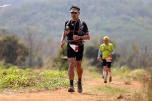 การแก้ปัญหาเฉพาะหน้าจึงเกิดขึ้น ผมต้องยอมเปลี่ยน HR ใหม่ ตั้งคุมไว้ที่โซน 3 แทน และใช้ฟิลลิ่งตัวเอง เช็คความรู้สึกแต่ละก้าวที่วิ่งว่าเราได้ใช้กล้ามเนื้อมากเกินไปมั้ยในการวิ่งเพซนั้นๆ เป็นการวิ่งที่ขายังรู้สึกสบายหรือไม่ แต่อย่างไรก็ตาม เมื่อ HR เกินโซน 3 ขึ้นมา ผมก็จะชะลอความเร็วให้ HR กลับเข้าไปอยู่ในโซนเสมอ แข่งเที่ยวนี้ ทางขึ้นเขาผมแทบจะไม่ได้วิ่งขึ้นเลย จะมีก็แต่ทางถนนช่วง 10 กม.แรกๆ เท่านั้น นอกจากนั้นส่วนใหญ่จะเดิน เซฟกล้ามเนื้อ แต่ขาลงผมจัดเต็มตลอด เหมือนกล้ามเนื้อขาช่วงวิ่งลงผมจะแข็งแรงกว่ากล้ามเนื้อขาช่วงขาขึ้น เลยทำให้มีอาการเท้าพองนิดหน่อยจากการเบรคเพราะมันเริ่มเร็วจนน่าจะเบรคไม่อยู่แล้ว