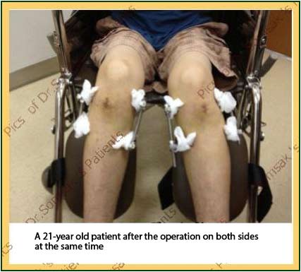 After the operation on one side, the patient needs to rest for 2-3 months before the operation on the other side can be done. The patient is not allowed to put body weight on the operated leg and is advised not to place the foot on the ground. To walk, the patient needs to use crutches or walker since moving can cause a shift on the operated bone from the corrected angle or the bone fixation will be slower.